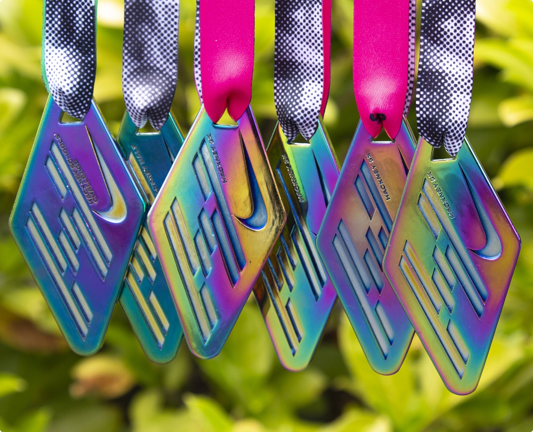 From marathon finisher medals with branded ribbons to corporate recognition trophies and school championship shields — we design and produce every piece from scratch to match your event identity, budget, and timeline.